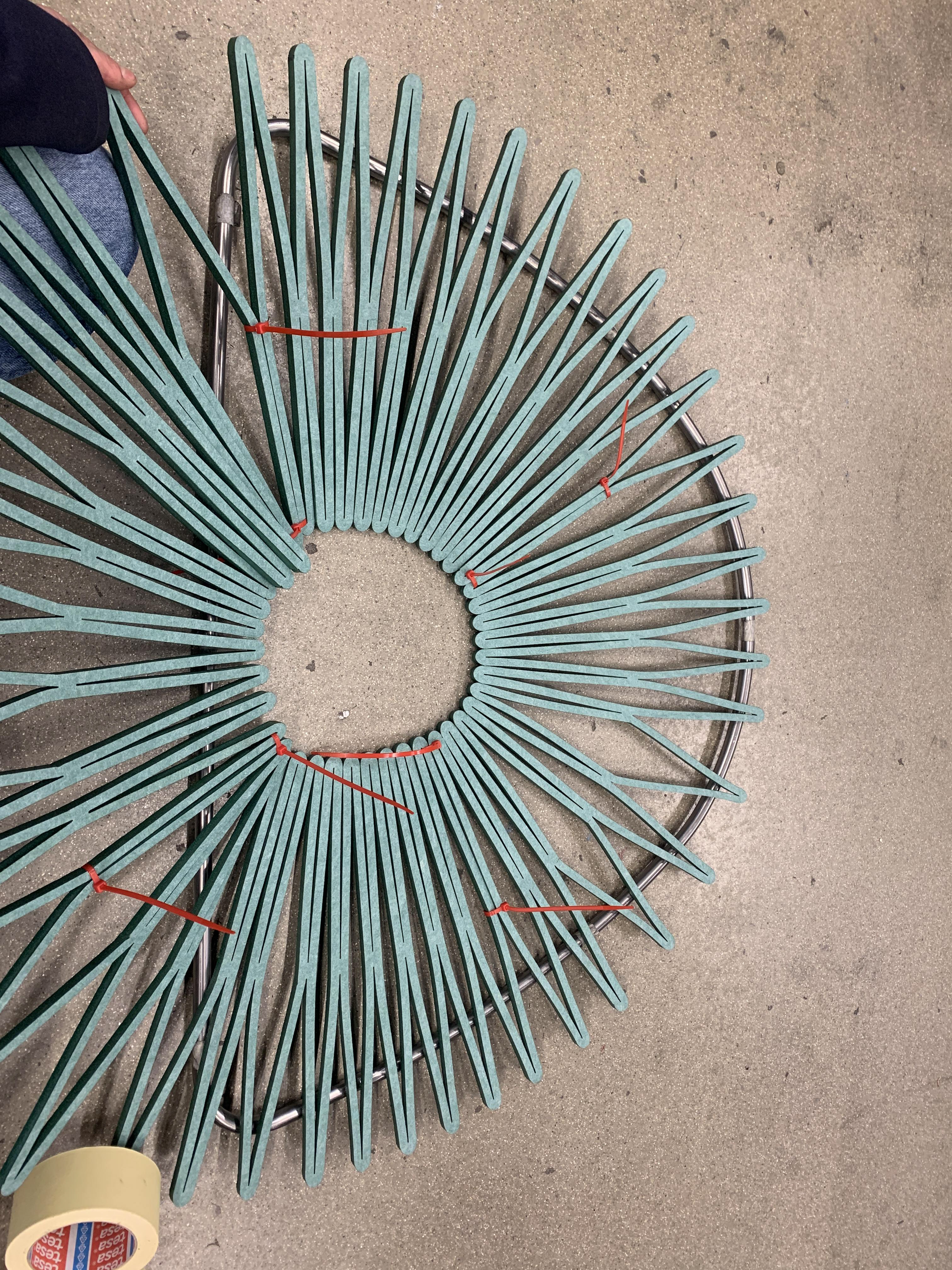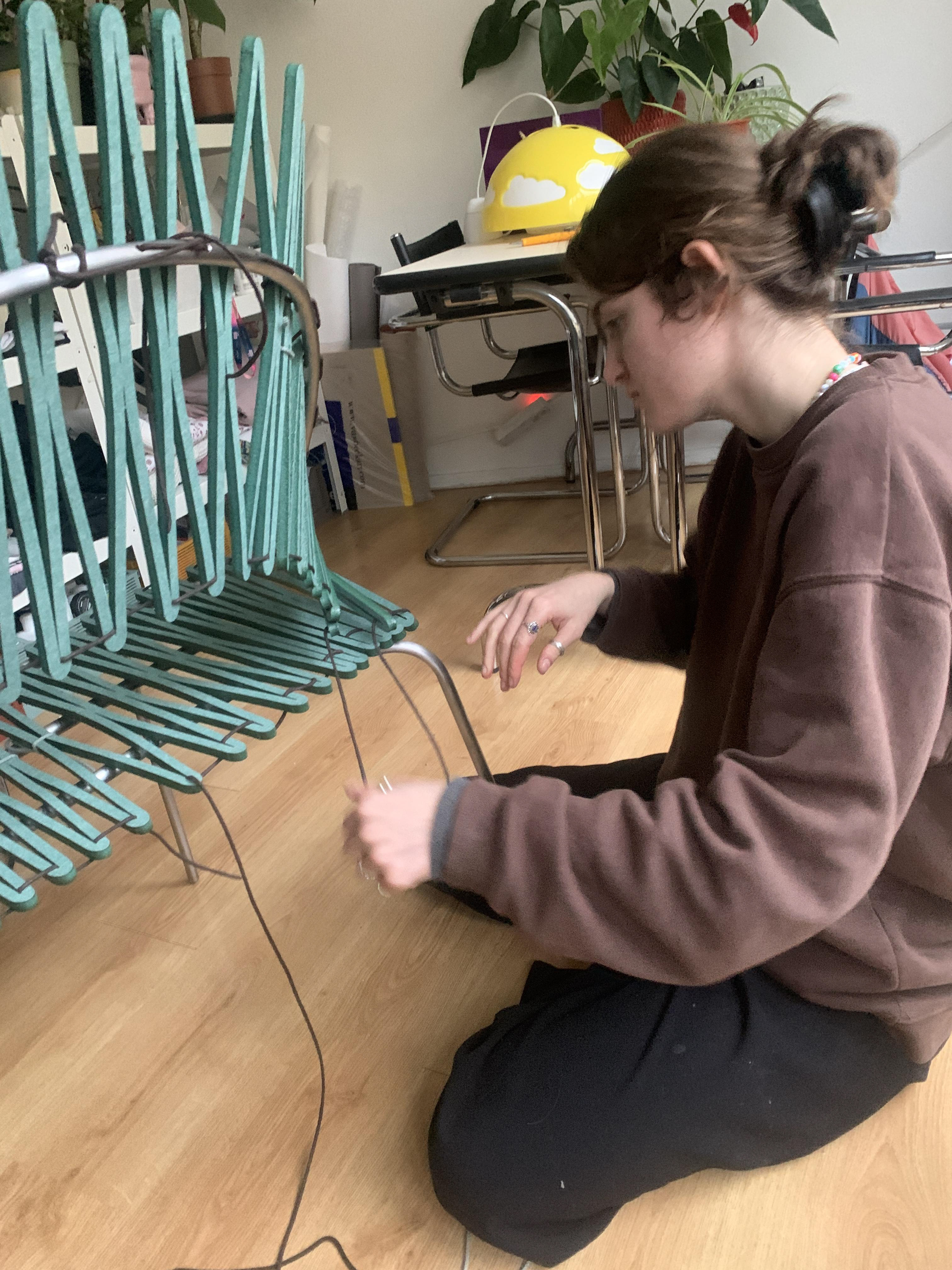 After discovering the stretchy qualities, I immediately thought of furniture-related products to make and finally came to the conclusion of implementing it as part of a chair design that would frame the person sitting in it.