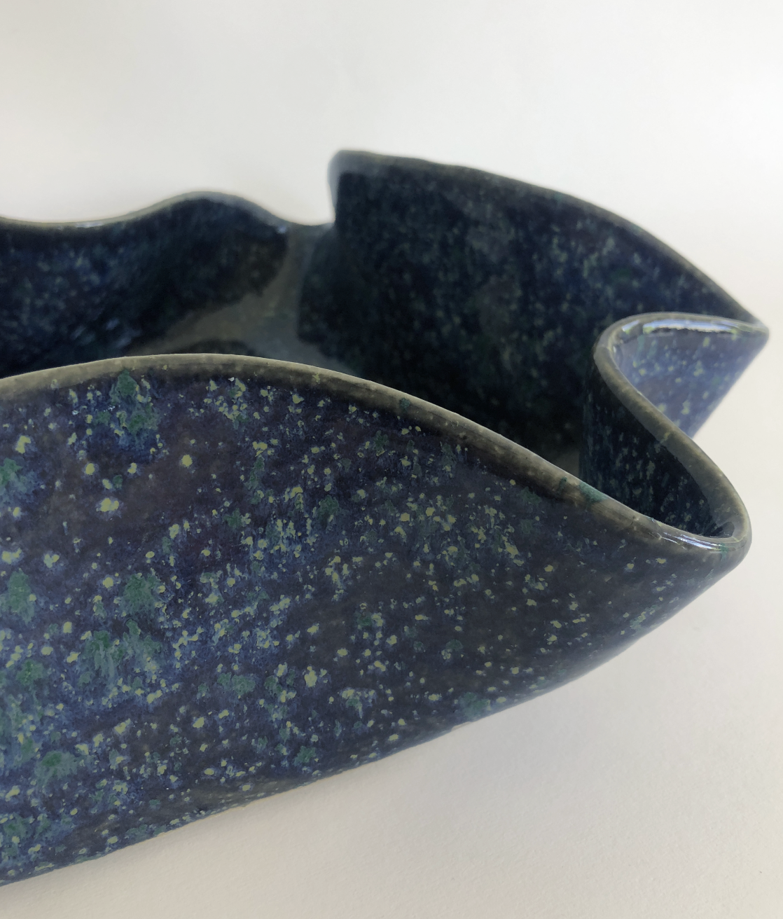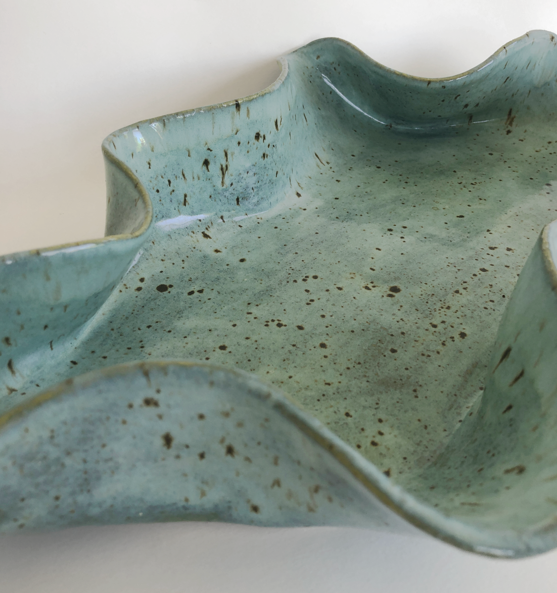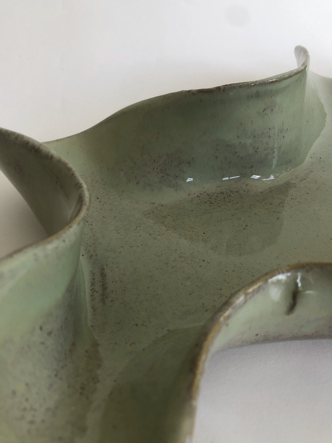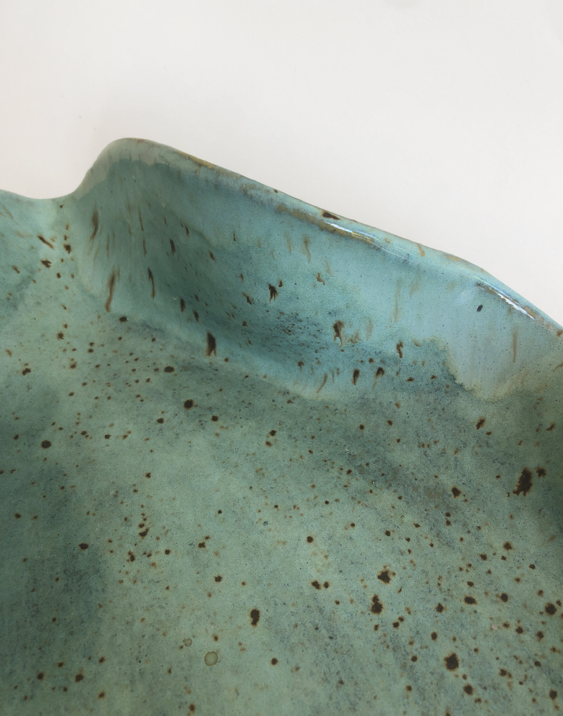 Part of a ceramic series that explores the natural shapes clay takes. The glaze brings out the clay's texture, highlighting the beauty of the material.