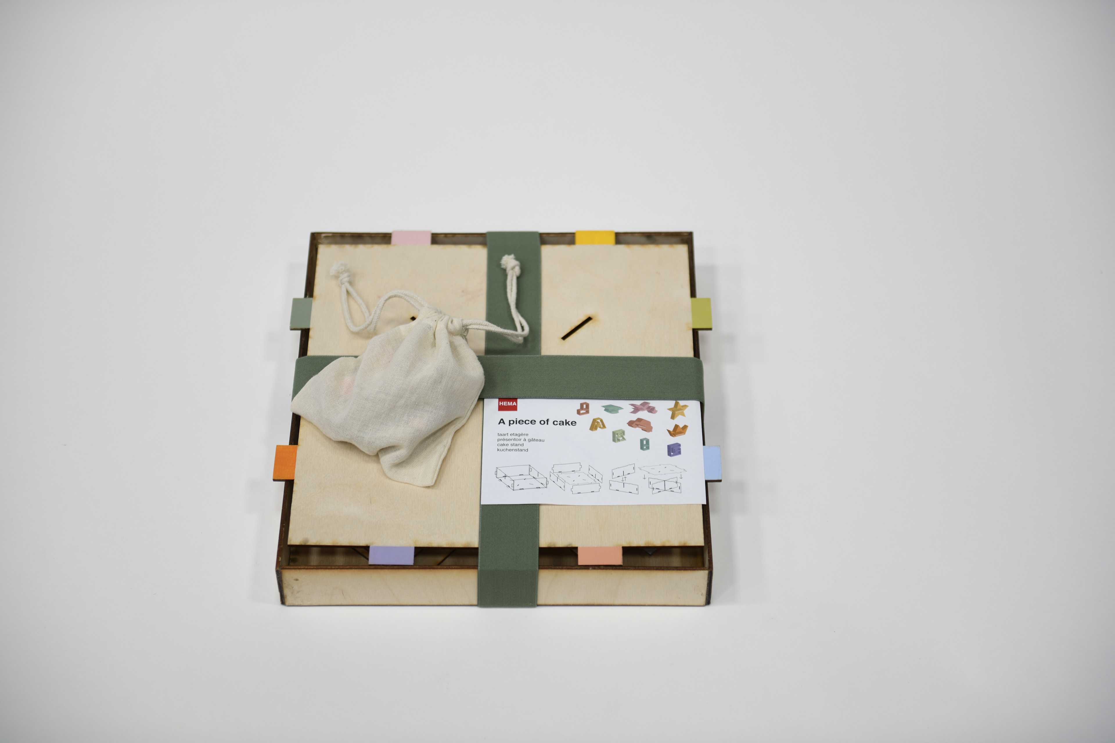 This project was done in collaboration with HEMA. “A piece of cake” is a reversible cake box that can be turned from a box into a stand and vice versa. Small icons can be added to the teeth on the side when the product is in the form of a stand as seen below.
